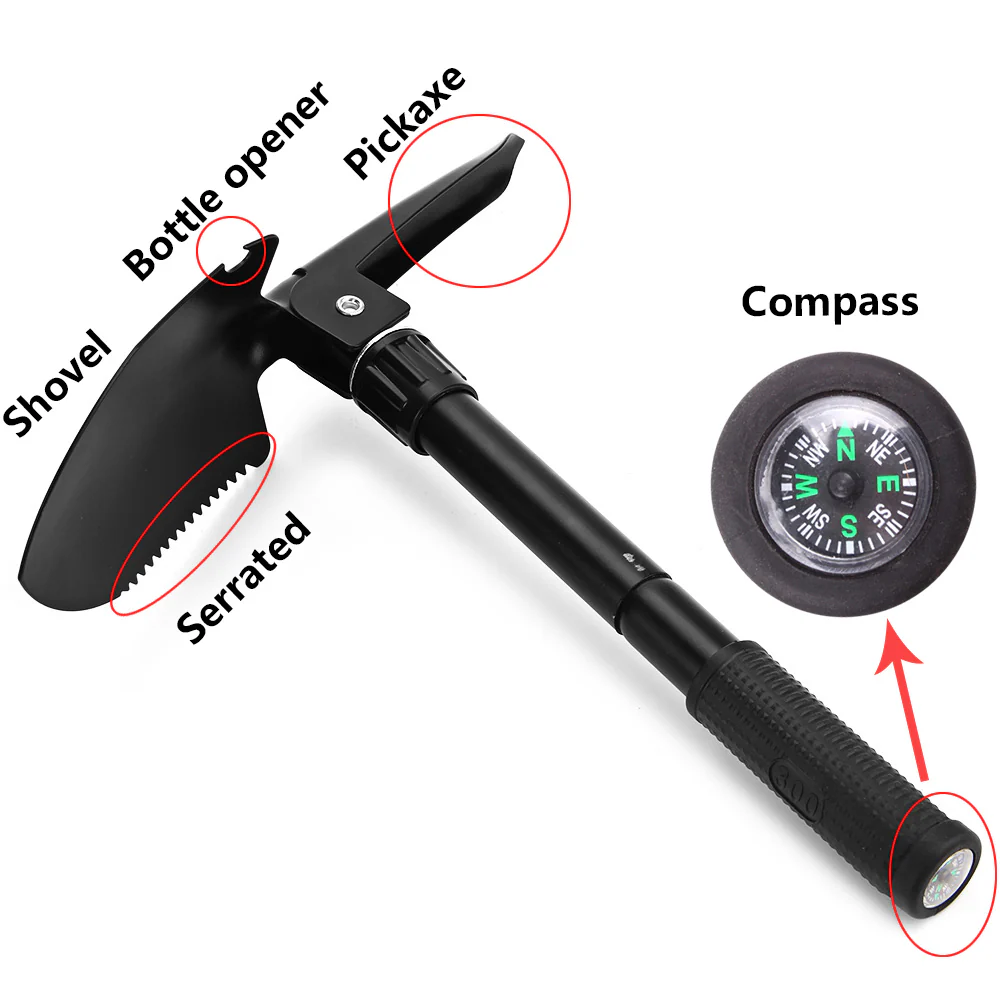 - Multipurpose & Versatile - Shoveling, Digging, Cutting, Chopping, Prying, Picking, Bottle Opening, Sawing, Hammering... ALL-in-one, Perfect for Camping, Hiking, Trekking, Gardening, Fishing, Backpacking and other outdoor activities