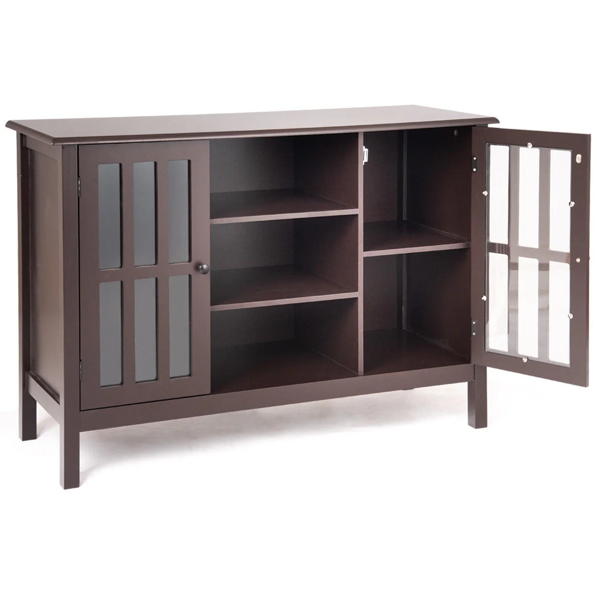Brand new and high quality. Accommodates most flat-screen TVs up to 45" or up to 80 lbs. With both open and closed storage to stow your things. With three open shelves for your cable box, gaming console, DVD player, and speakers. Behind each door, there are two shelves for organizing books, games, and DVDs. Simple stylish design in elegant white finish, functional and suitable for any room. Fits in your space fit on your budget. The Cabinet door features a glass window. Assembly required.